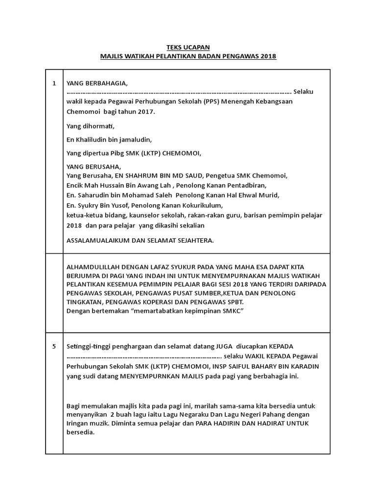 Teks Ucapan Majlis Penyerahan Watikah Perlantikan Pengawas Pdf